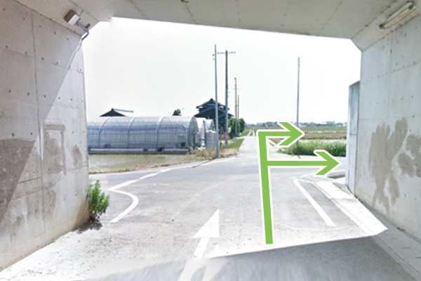 トンネルを出てすぐを右折してください。