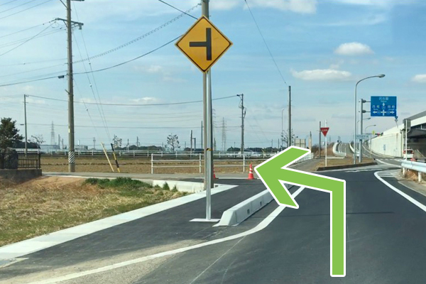 インター下りてすぐの信号を直進しますが