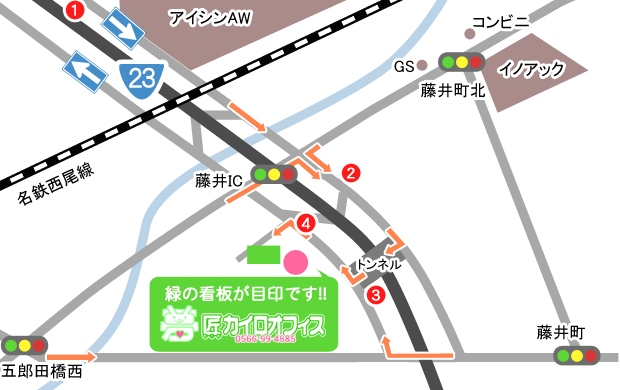 23号の名古屋・刈谷・知立方面からお越しの方は、藤井インターで下りてください。